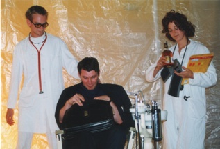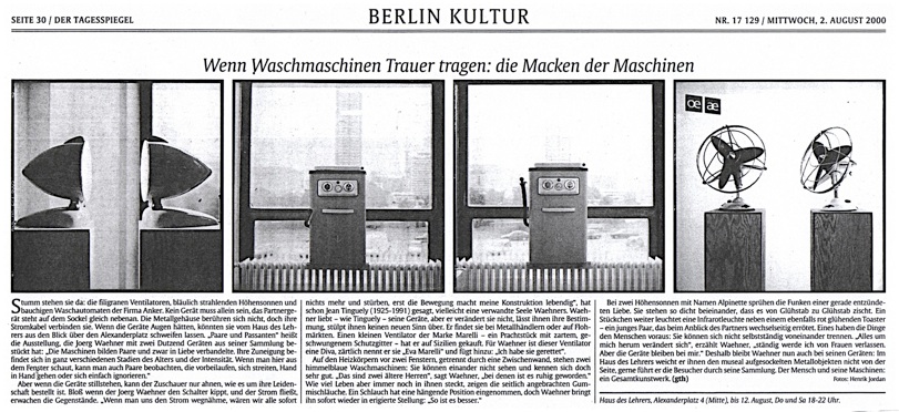 Die Aufladung mit Bedeutung setzt sich bis in private Bezüge fort: Das ,oe‘ in ,Herr Doeblins Lounge‘ ist eine ,Hommage‘ an den Künstler Joerg Waehner, der im selben Raum vor kurzem eine Arbeit präsentierte, die sich um die Umlautersatzbuchstabenkombinationen ,ae‘ und ,oe‘ drehte.“ / FAZ, 2.11.2000