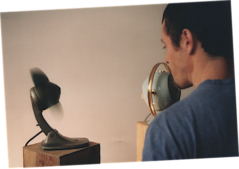 Objekte der Begierde kommunizieren miteinander, mit dem Charme menschlicher Regungen. Dabei handelt es sich um Alltagsgegenstände aus seinem Umfeld: Lüfter, Heizer, Toaster, Bügeleisen, die ein privates Wertesystem im dialogischen Gegenüber bilden.
